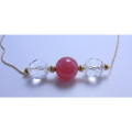 感情の解放、ストレス、人間関係の緩和、恋愛成就 として大人気の ロードクロサイト(インカローズ) 本当に貴重な最高級の9ミリ玉と8ミリのピラミッド型水晶を18金で組み合わせました。