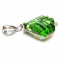 グリーンオブシデイアンペンダントトップ (シルバー枠、シルバー鎖付)24mm×12mm 厚さ8mm